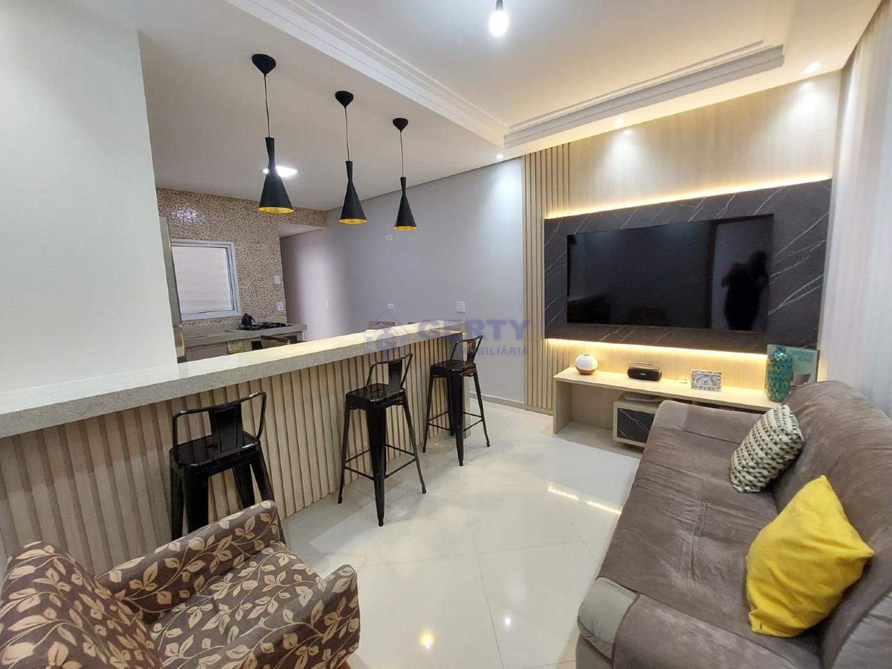 2 dormitórios, 1 sala, 1 cozinha americana, 1 w.c. social, 1 área de serviços, 2 vagas, fundos com 1 casa quarto, cozinha, 1 w.c. social e 1 área de serviços.